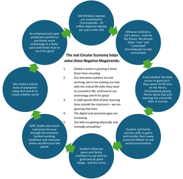 The old Windows laptop (10 million/yr that are disposed of and plugging up the "eWaste" systems) can now be donated and repurposed as a Chromebook, and used as the safest, controlled and purpose driven device on the planet - and its a much, much better device than the kids are using in their schools.